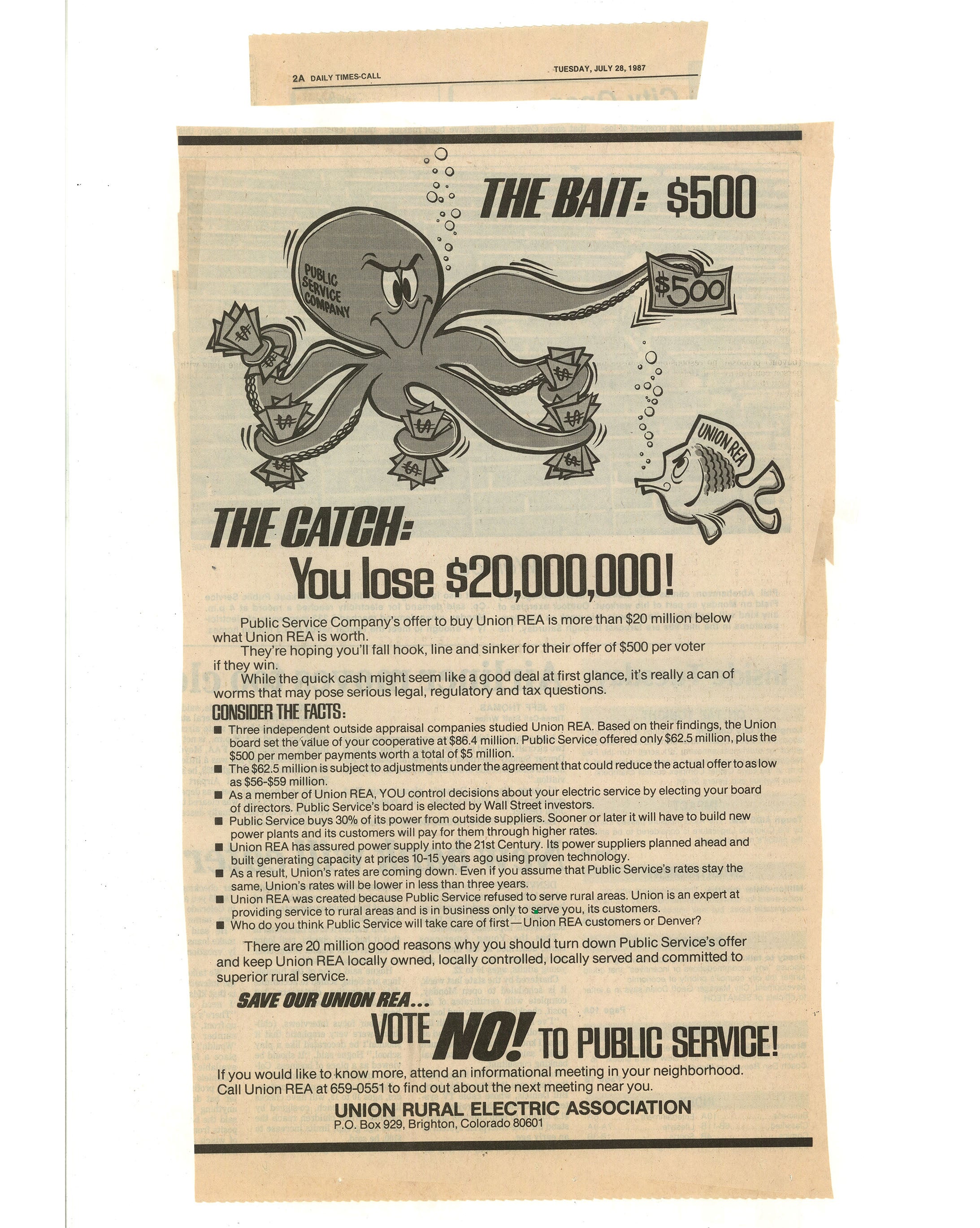 Union Rural Electric Association’s service area becomes the target of a takeover attempt by Public Service Company of Colorado (PSCo). At nearly 13,000 meters, PSCo mounted a campaign to take over the lucrative and growing service area.