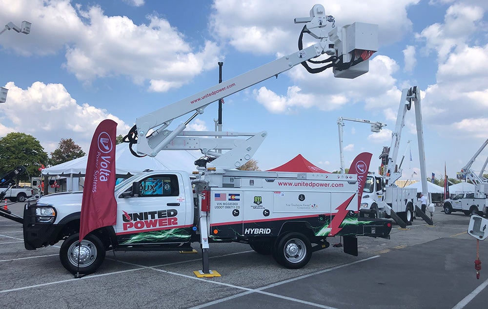 United Power debuts first hybrid bucket truck, which uses battery power to raise and lower the bucket and the jib, a small crane attached to the bucket. It is the first model in the nation to use battery power for both operations.