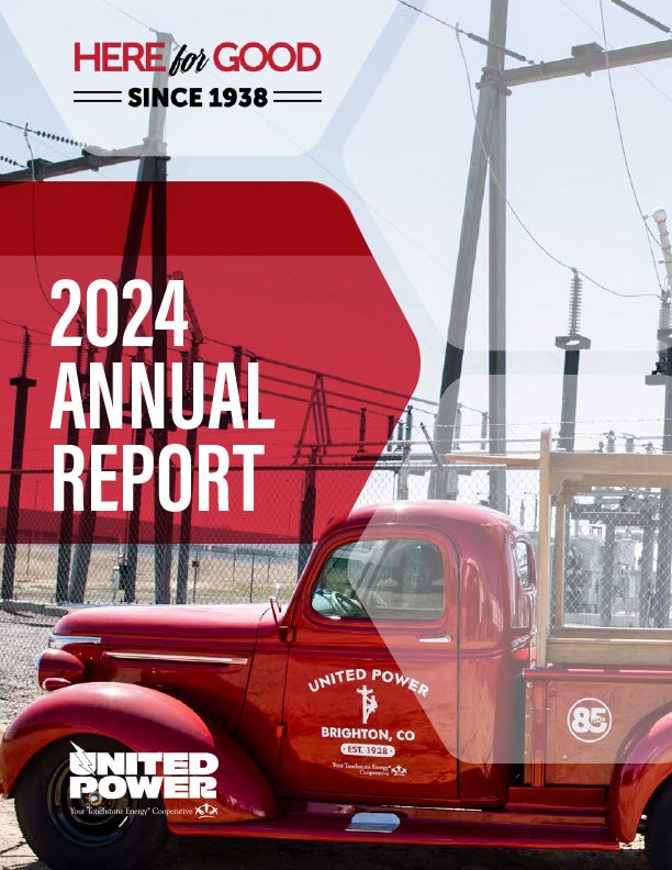 Each year United Power makes available an annual report of our operations to all of the cooperative members. Download past annual reports here, or email us your name and mailing address and we’ll gladly mail you a copy.