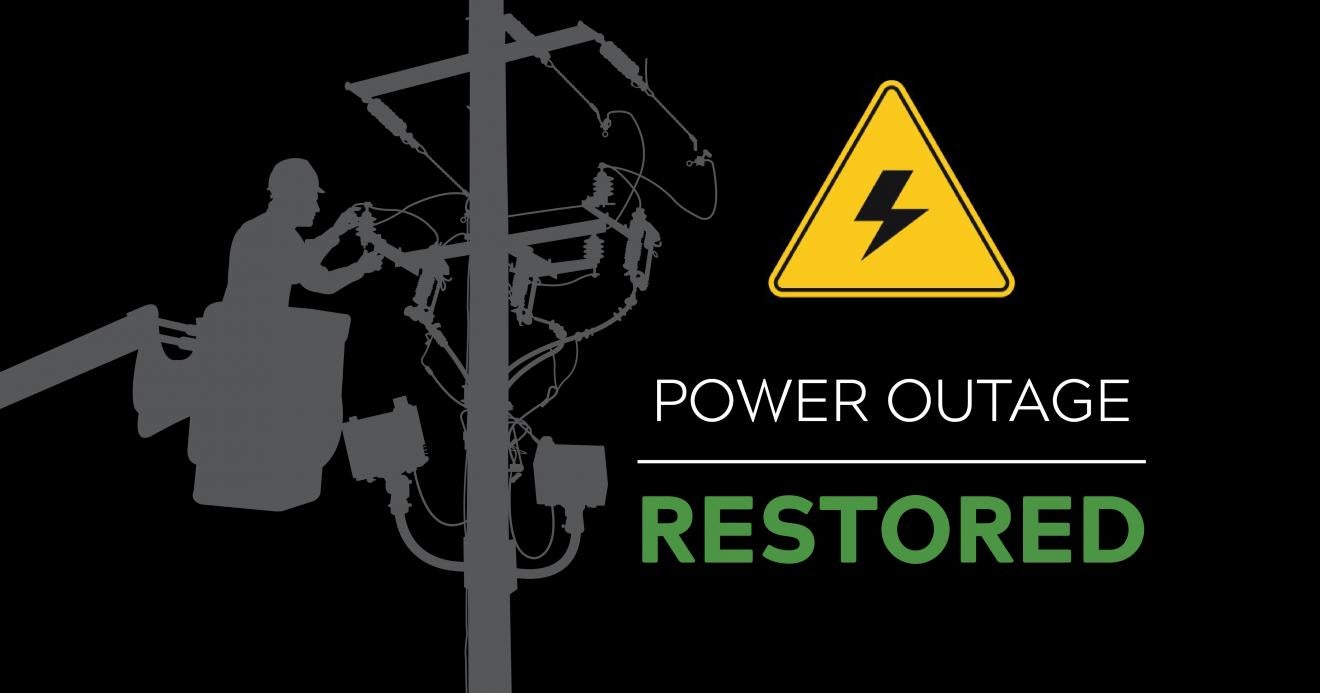 Power has been restored, ending the outage. If you are still without power, please report it using one of the methods below.